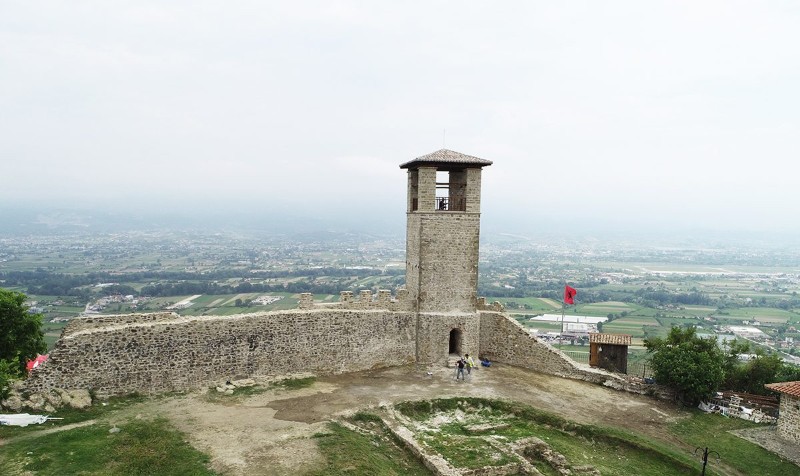 Preza is located between Tirana, Durres and Rinas Airport. It has a castle - therefore possessing tourist attraction potential. It has a great wealth in natural resources, with a great diversity regarding its flora and fauna. It has orchards where olive trees grow besides vines and the farmers maintain the traditions of their cultivation. The Preza Castle overlooks the village with the same name and is located on a hilltop. It is a small castle the construction of which started in the 14th century and was completed in the early 15th century and belonged to the Topias, a local feudal family. The castle has been declared a 'monument of culture. It has four towers, one in each corner. The clock tower was erected around 1800-1850. It is known for its beautiful location, overlooking the Tirana plain. The castle is quite close to the Mother Theresa International Airport. A restaurant and other service facilities are found inside the castle.